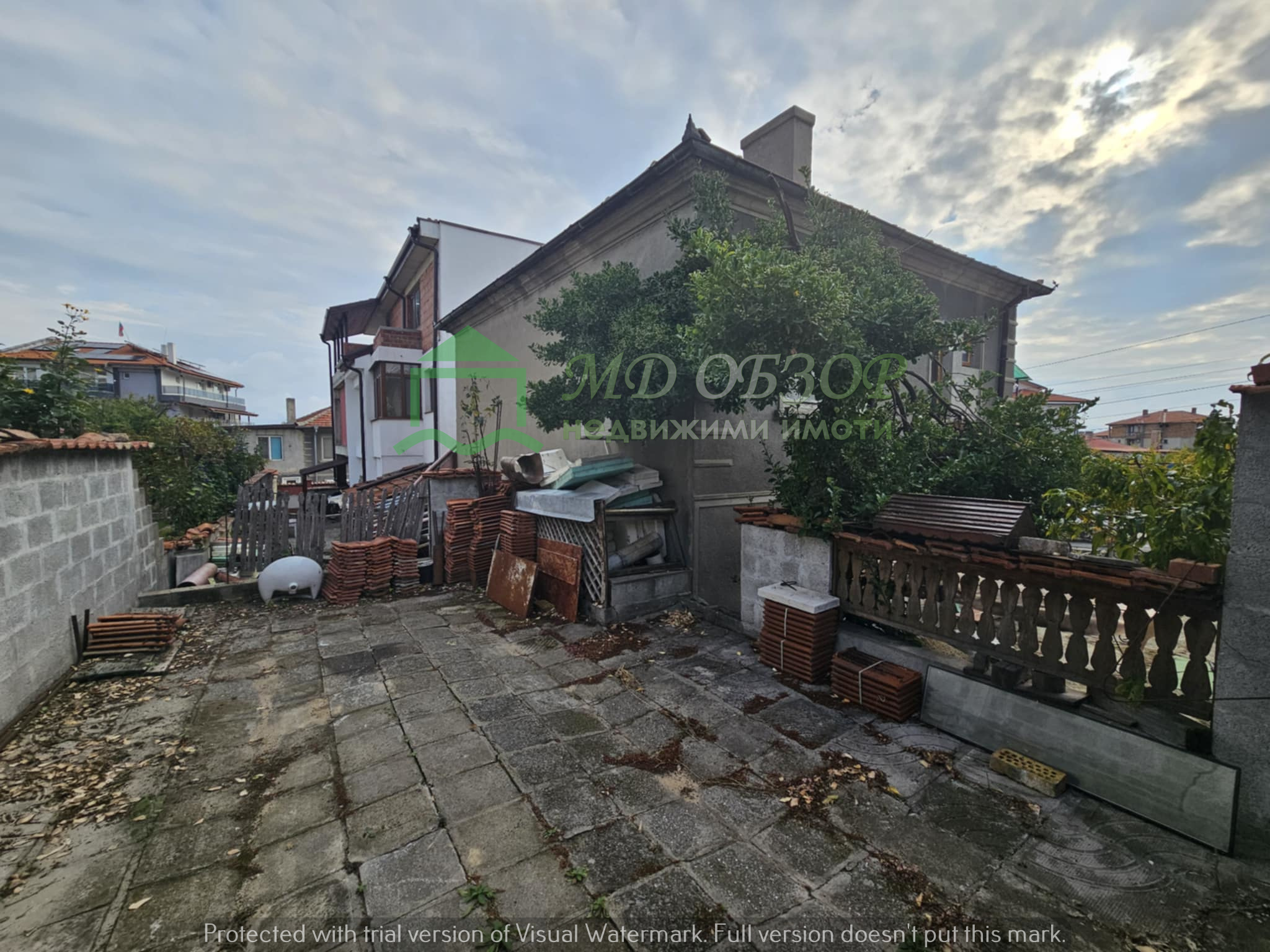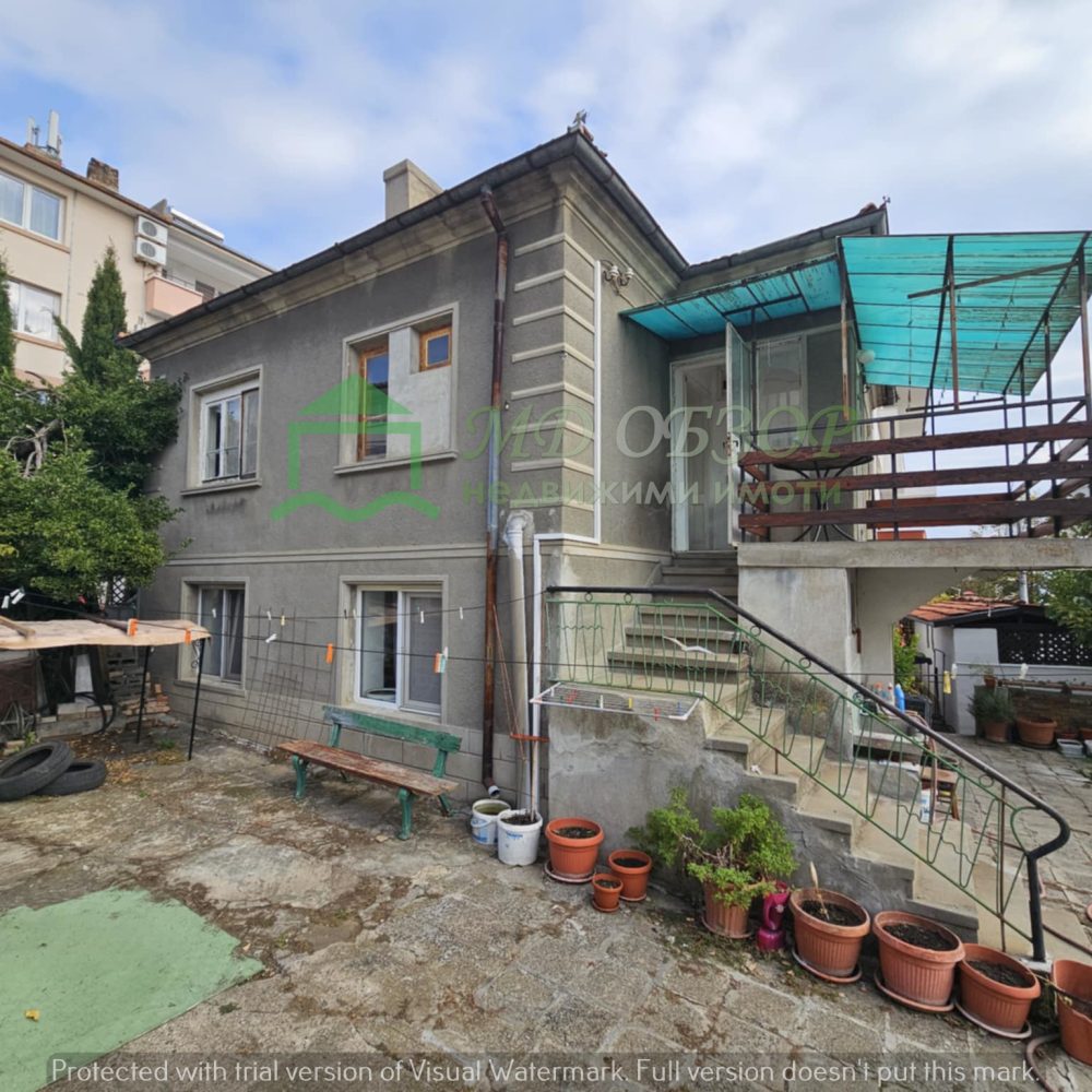 Имаме удоволствието да Ви предложим за продажба двуетажна къща с ъглов парцел, разположена само на 200м. от плажа и на 130м. от обновения център на красивия град, с две лица към прилежащите улици. Сградата е построена през 1960г., като през 1972г. е направена външна циментова мазилка. Изградена е от единични тухли и гредоред. В последствие са направени санитарни възли и на двата етажа. До втория етаж достъпа е осигурен посредством външно стоманобетонно стълбище. Външната дървена дограма е сменена частично с алуминиева. Разпределението на двата етажа е: три спални, коридор, санитарен възел, като на втория етаж е изградена уютна тераса. Къщата е сравнително запазена, но е необходим ремонт: подмяна на част от външната и вътрешна дограма, направа на окачен таван, шпакловка и пребоядисване в зависимост от предпочитанията на бъдещия купувач. Къщата е подходяща за целогодишно обитаване или доизграждане / укрепване, пристройка и надстройка /, като се спазват одобрените за имота градоустройствени показатели: Плътност = 50%, Кинт. =1.20 , Нк=10.00м. и начин на застрояване „свързано“ със североизточния парцел. В парцела е осигурено паркиране на един автомобил от северната страна, като има възможност да се разшири до три паркоместа. Без комисионна от купувача!