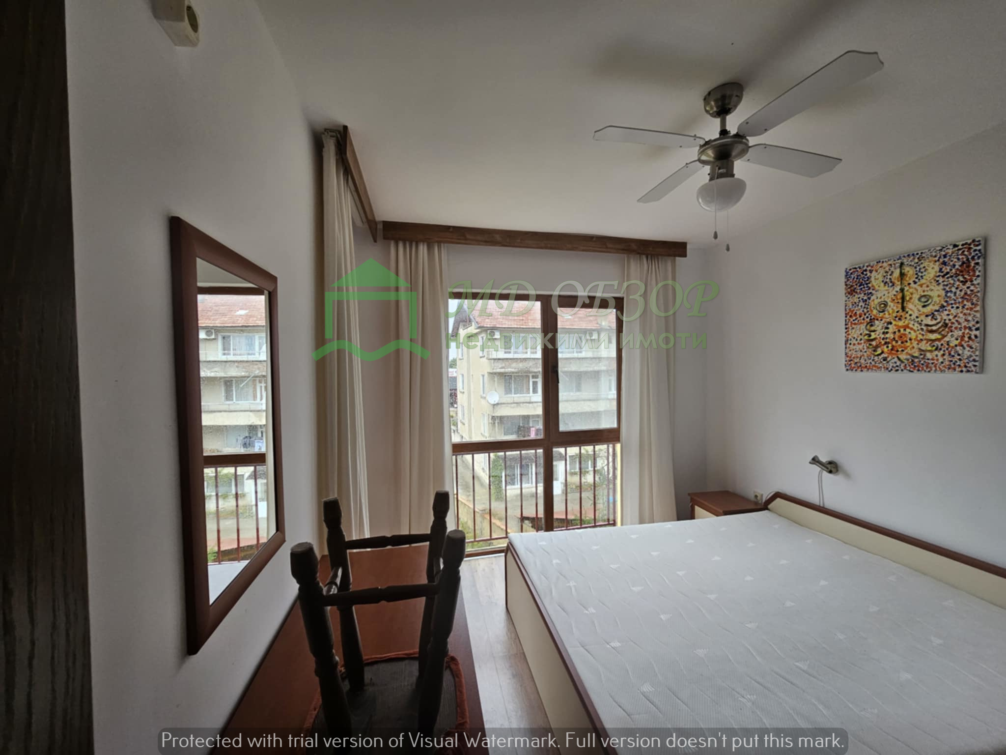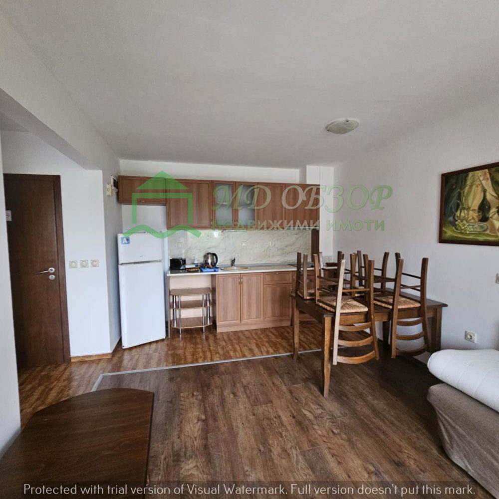 НОВО ПРЕДЛОЖЕНИЕ! Предлагаме Ви за продажба двустаен обзаведен апартамент на втори жилищен етаж със северозападно изложение в централната част на град Обзор. Апартамента се състои от всекидневна с оборудван кухненски кът, спалня, санитарен възел и обща покрита уютна тераса с достъп както от всекидневната , така и от спалнята. Застроена площ: 42.98кв.м.; общи части: 7.42кв.м. и изба 2.88 кв.м. Сградата е четириетажна /партер и 3 жилищни етажа/, разположена на 300м. от морето, на 70м. от градските паркове и на 100м. от търговските улици. Тих и спокоен квартал за почивка или постоянно обитаване. Сградата е с асансьор , малък басейн,летен кът и добре поддържан двор. Самостоятелни електромери за отчитане; има възможност за монтиране и на самостоятелни водомери с дистанционно отчитане. Към всеки апартамент има съответната площ от избата, като не са обособени самостоятелни помещения. Сградата е с акт 16 от 2009г. Такса за поддръжка 5 евро / кв.м. за година. В същата сграда се продават и: двустаен апартамент на първи жилищен етаж с изложение: североизток на цена от 63 600 евро и студио на втори жилищен етаж с изложение: североизток на цена от 57 250 евро. Без комисионна от купувача!