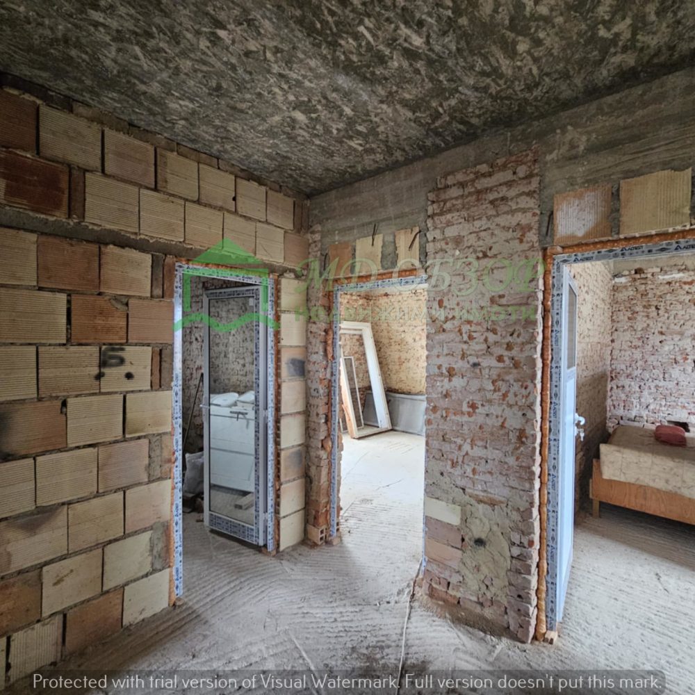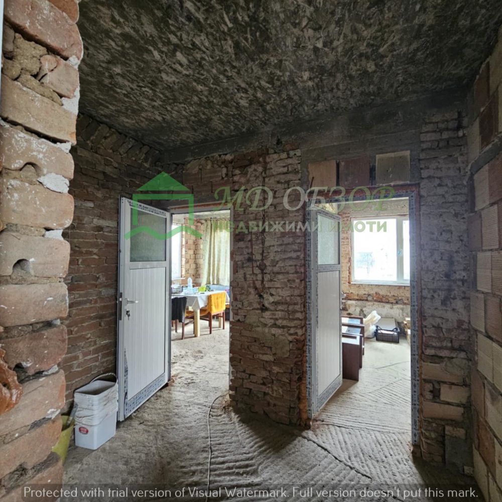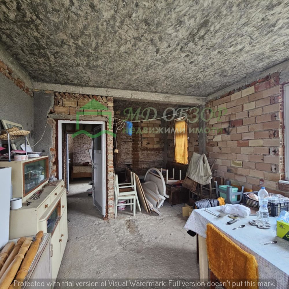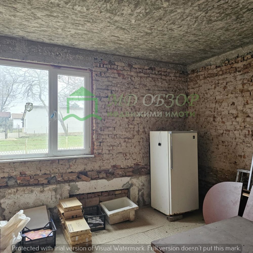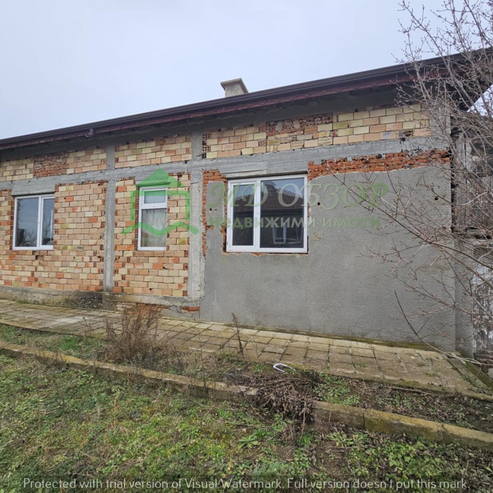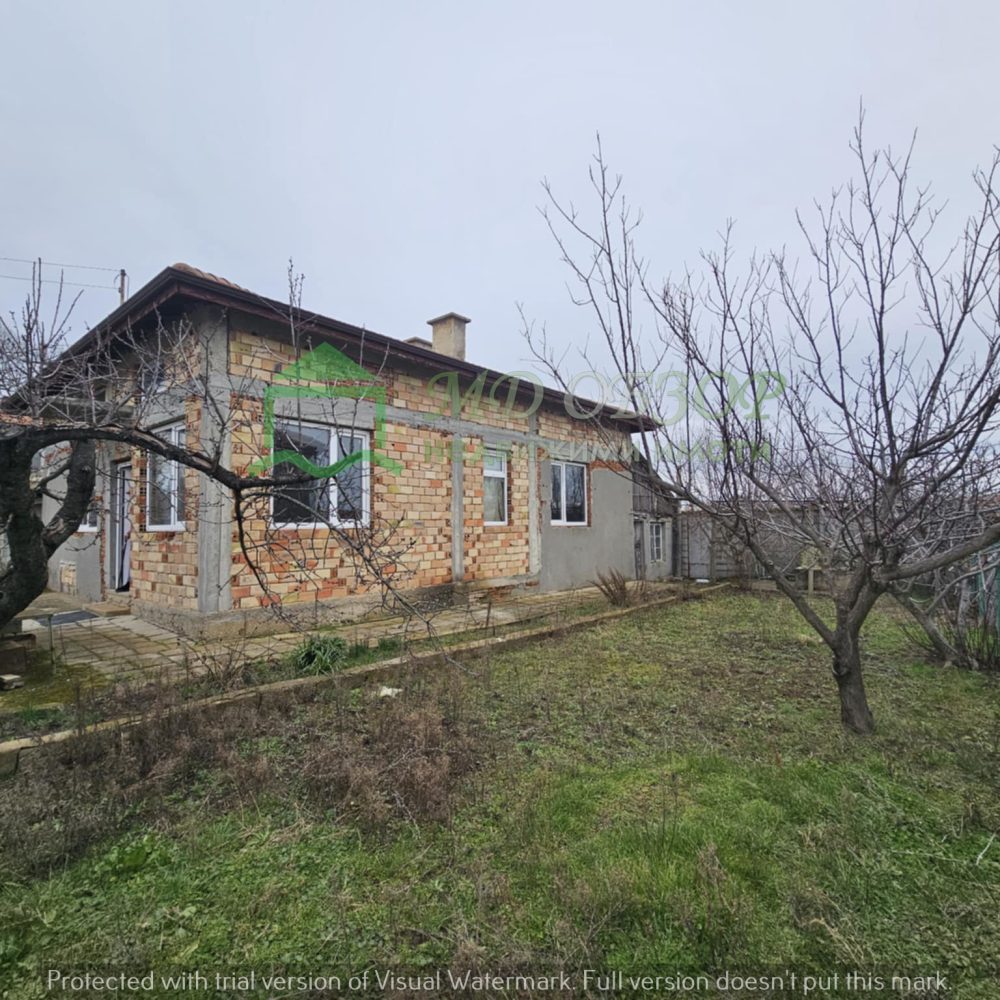 Сградата е след основен ремонт: изградени са допълнително стоманобетонни колони, стоманобетонна плоча на пода и между жилищния етаж и подпокривното пространство; покривът е нов, изпълнен с дървена конструкция и керемиди; сменени са електрическата, водопроводната и канализационна инсталация; монтирана е нова алуминиева вътрешна и външна дограма. Разпределение: входно антре с всекидневна и кухненски кът, коридор, три просторни спални и санитарен възел. Новия собственик ще има възможността да довърши започнатия ремонт по свой вкус и предпочитания. В двора има функциониращ кладенец и  външна чешма. Има около двадесет овощни дървета, които могат да дадат допълнителен чар на бъдещо облагородяване на пространството. Съществуващите стари постройки може да се отремонтират или премахнат. Има възможност за изграждане на гараж или паркоместа за поне два автомобила. Сградата е електрифицирана, водоснабдена и канализацията е включена в уличния колектор.  Без комисионна от купувача! За повече информация и огледи: тел. 0884779233 – Божидар Димов