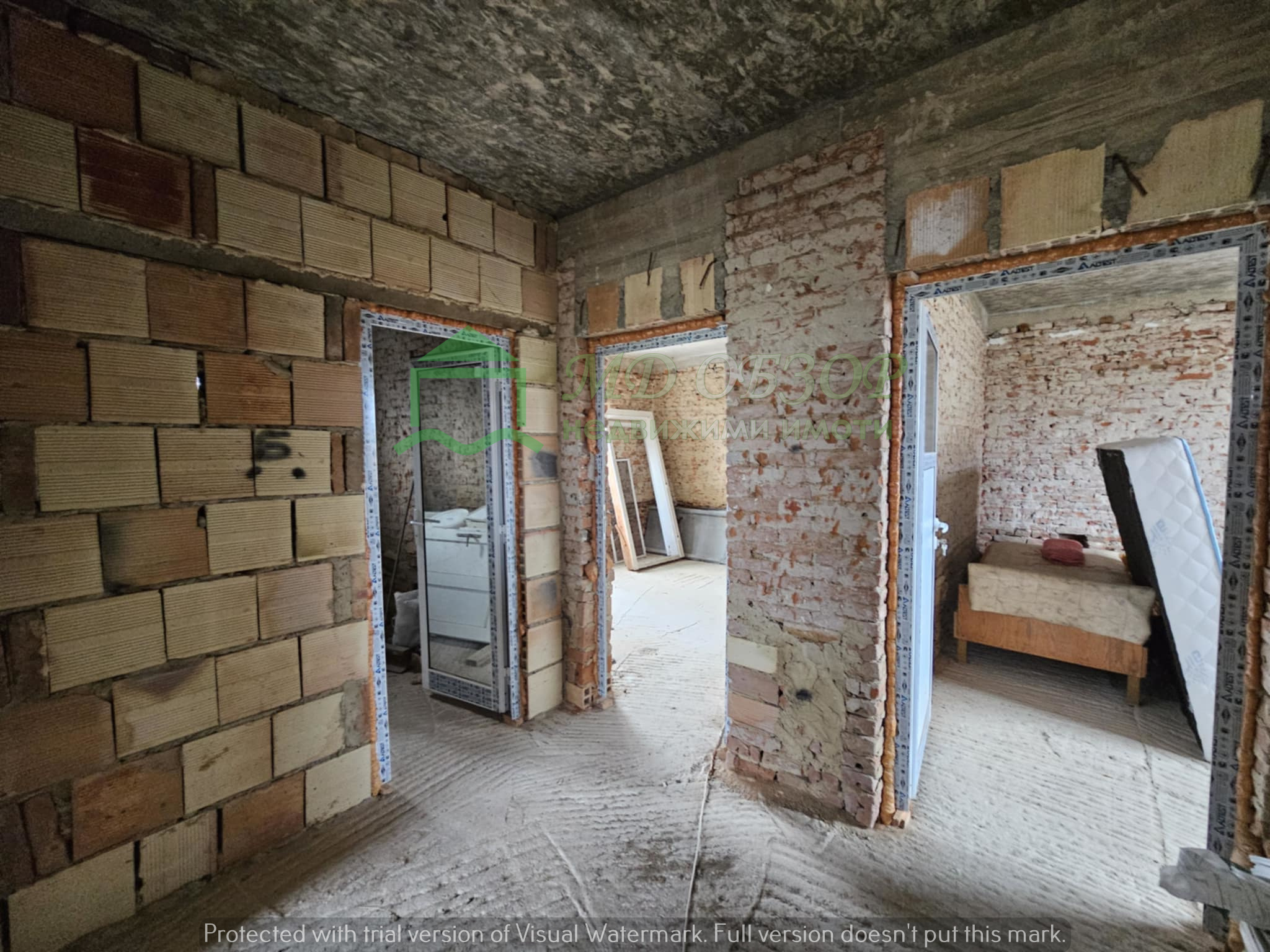 Сградата е след основен ремонт: изградени са допълнително стоманобетонни колони, стоманобетонна плоча на пода и между жилищния етаж и подпокривното пространство; покривът е нов, изпълнен с дървена конструкция и керемиди; сменени са електрическата, водопроводната и канализационна инсталация; монтирана е нова алуминиева вътрешна и външна дограма. Разпределение: входно антре с всекидневна и кухненски кът, коридор, три просторни спални и санитарен възел. Новия собственик ще има възможността да довърши започнатия ремонт по свой вкус и предпочитания. В двора има функциониращ кладенец и  външна чешма. Има около двадесет овощни дървета, които могат да дадат допълнителен чар на бъдещо облагородяване на пространството. Съществуващите стари постройки може да се отремонтират или премахнат. Има възможност за изграждане на гараж или паркоместа за поне два автомобила. Сградата е електрифицирана, водоснабдена и канализацията е включена в уличния колектор.  Без комисионна от купувача! За повече информация и огледи: тел. 0884779233 – Божидар Димов