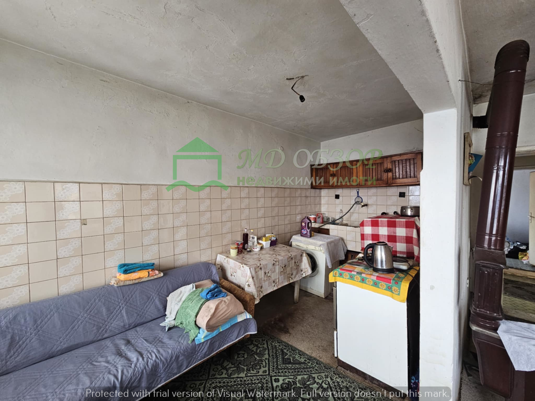 Предлагаме Ви за продажба едноетажна масивна къща със застроена площ от 87.50кв.м. и дворно място 879кв.м. в село Попович, на 7 км. от град Обзор /пътят е след основен ремонт/. Имотът е разположен в центъра на селото, с лице към главния път Обзор – Дюлино. Разпределението на етажа: входно антре, всекидневна с кухня, две спални и санитарен възел.  Къщата е изградена с единични тухли, стоманобетонна плоча, покрив с дървена конструкция и керемиди. Построена е през 1985г.; издадено разрешение за строеж и удостоверение за заварен строеж по параграф 6 от ПЗР на Наредба №2/ 2003г., което дава възможност за закупуването и с ипотечен кредит. Къщата е водоснабдена и има електричество с действащи партиди. В селото има изградена канализация, но в тази част все още не е завършена. В момента битово – фекалните води се отвежда в септична яма. Терасата и козирката на южната фасада са значително компрометирани /провиснали/ и трябва да се укрепят или премахнат.  В съседство сградите са обитавани. Правилната форма на парцела дава възможност за изграждане на втора къща, летен кът, басейн или гараж. В селото са на разположение няколко хранителни магазина, има и функционираща детска градина.