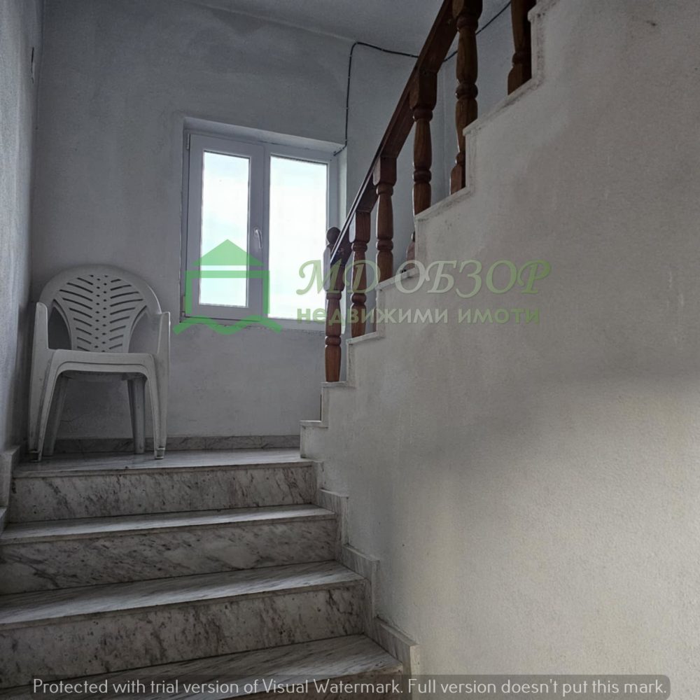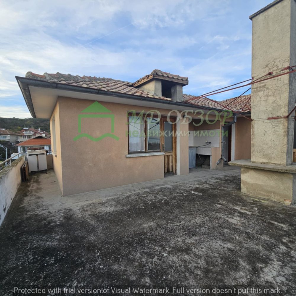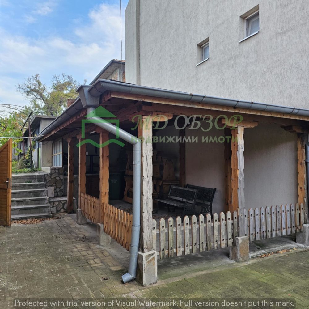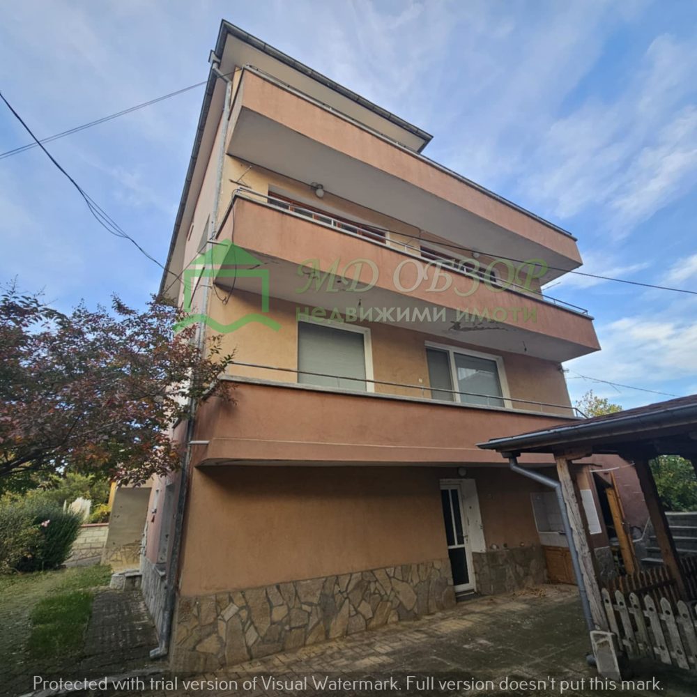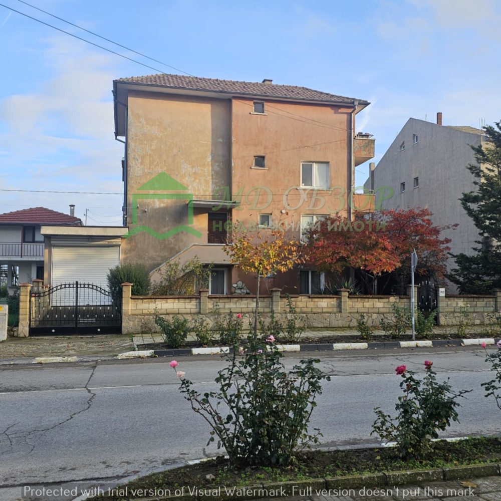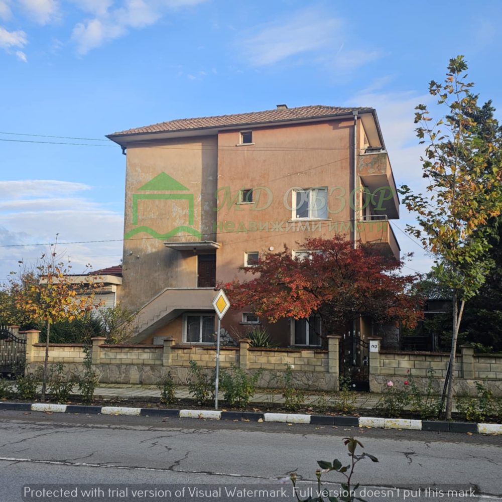 !!! Покрива на сградата е изпълнен с дървена конструкция и керемиди. Към момента няма течове от него. Плоския покрив също е в добро състояние. Стълбищната клетка между първи, втори и трети етаж е в добро състояние, като стъпалата са изпълнени с мрамор. Оградата пред входа на къщата е изпълнена от декоративно ковано желязо, гаражна врата и вход. Всеки от етажите е с отделно отчитане на електроенергията. Сградата се нуждае от текущ ремонт: частична подмяна на дограма, настилки по избор, евентуална външна изолация /в момента е с варо – циментова мазилка/, ремонт на санитарните възли.