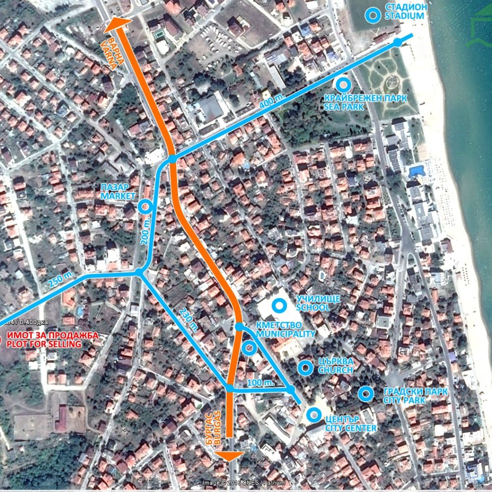 Осем самостоятелни имота по 400кв.м., разположени в западната част на гр. Обзор. Естествената денивелация на имотите открива уникална панорама към морския залив. Тишината и спокойствието са гарантирани, а горите на Стара планина започват на 50м. До плажа ще вървите 850м.,разходка до центъра – 580м. , а търговските улици са на 450м. За имотите има изработен и одобрен ПУП-ПЗ за градоустройствени показатели: Пл.=30%; Кинт. = 1.00 и Н=10.00м. и осигурен транспортен достъп с тупик. Канализация и ел. захранване на 100м., водопровод, непосредствено до имотите. Достъпът до имотите е по съществуващ бетонов път. Всеки един от имотите е подходящ за изграждане на собствена къща, вила или къща за гости! Има издадена виза за проектиране на един от имотите, както и изработен идеен проект. При проявен интерес е възможно и обединяване на имотите.