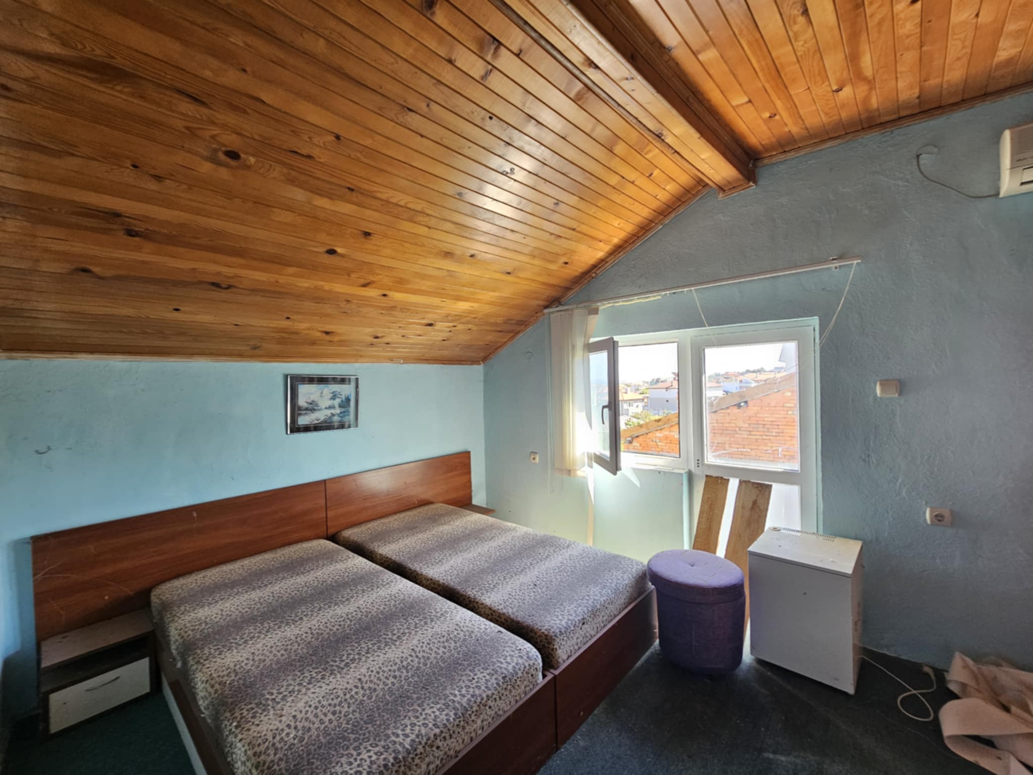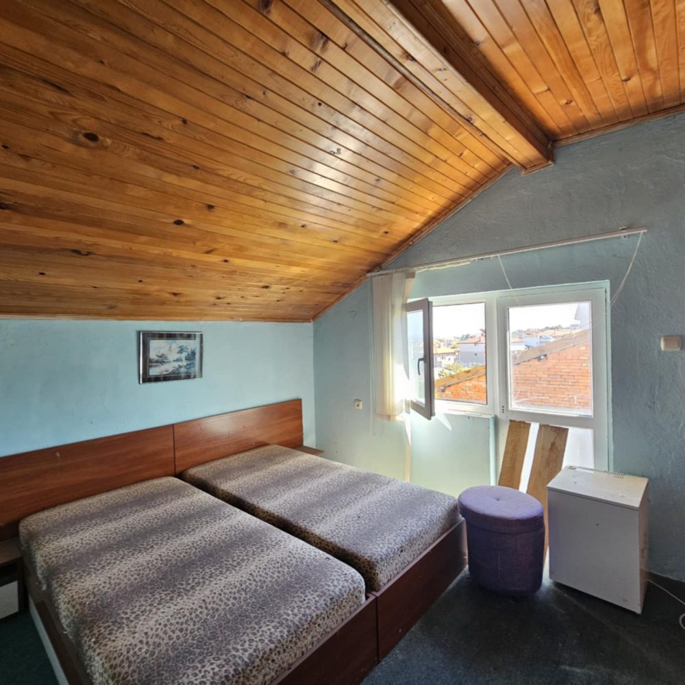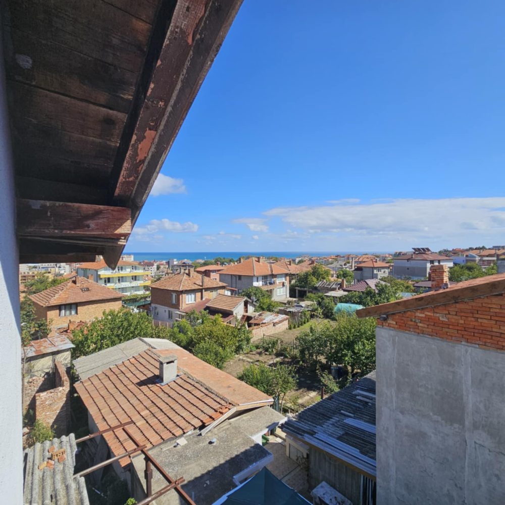 ЕКСКЛУЗИВНА ОФЕРТА! Предлагаме Ви за продажба триетажна жилищна сграда, разположена в тих и спокоен квартал в западната част на курортния град с панорама към Обзорския залив и на 100м. от горите на Стара планина. Разстоянието до центъра и търговските улици е 500м., а плажът е на 700м. от имота. Сградата се състои от два жилищни етажа плюс тавански използваем етаж, всеки от които със застроена площ от 73кв.м., като на разположение е и изба на площ от 15кв.м. Къщата е масивна, изпълнена с единични тухли и стоманобетонна конструкция. Построена е в периода 1980г. – 1985г. , а през 2005г. е ремонтирана частично: монтирана почти изцяло алуминиева дограма, мазилка на северна, западна и южна фасада, монтирани климатици, дървена обшивка на тавански етаж, боядисване. На първи етаж са разположени малък апартамент със санитарен възел и отделен вход, голяма спалня с кухненски кът, общ санитарен възел.. Чрез вътрешно стоманобетонно стълбище се осигурява достъп до втори жилищен етаж, който се състои от коридор, три спални с тераси и общ санитарен възел. На таванския етаж са обособени четири спални, две от които с тераси. Пред къщата има изграден летен кът със зидана камина за общо ползване. Новият собственик може да я обитава веднага, като в последствие извърши необходимите ремонти. Парцелът в който е изградена сграда е общински с учредено право на строеж на възложителя – продавач!