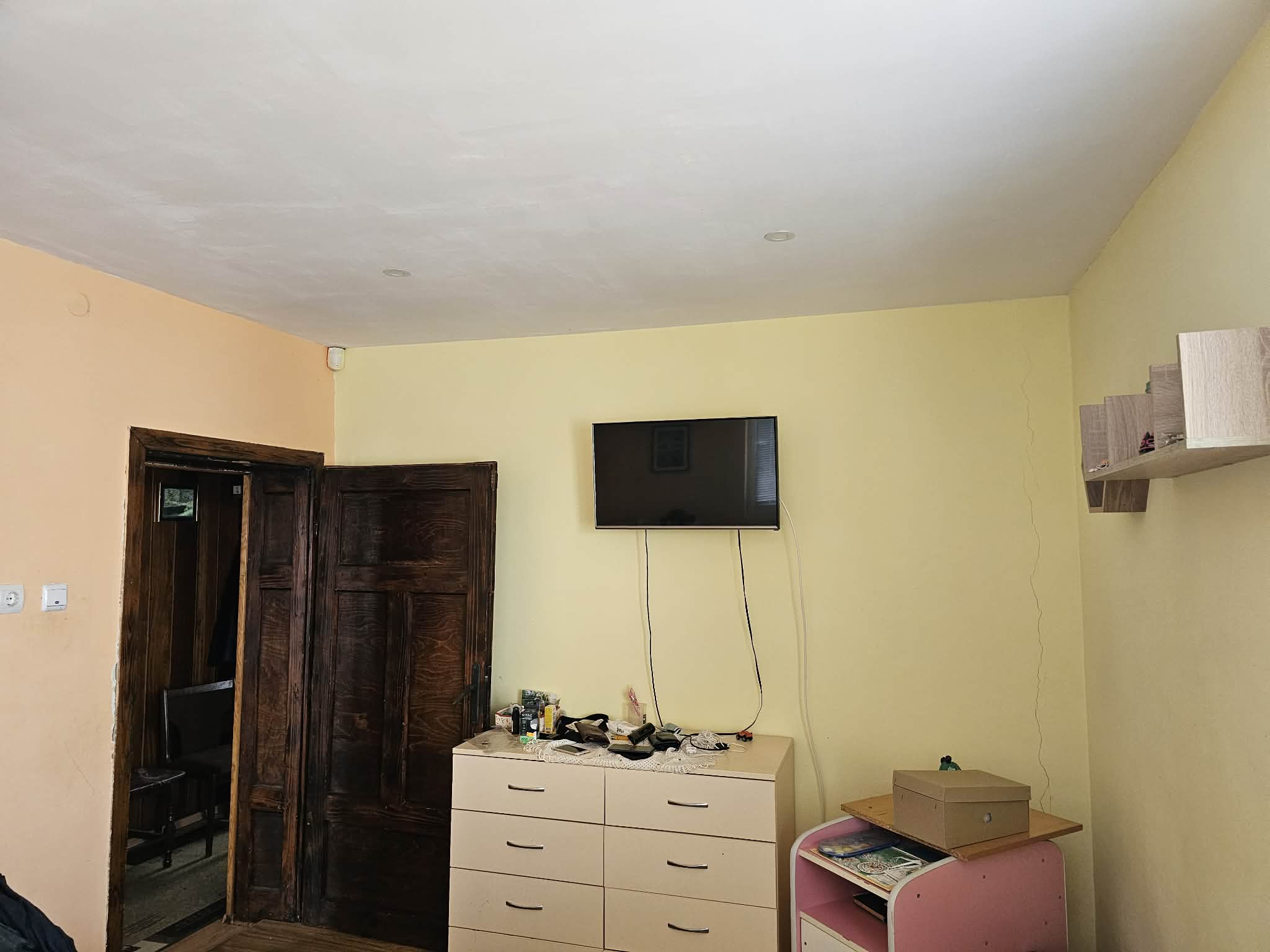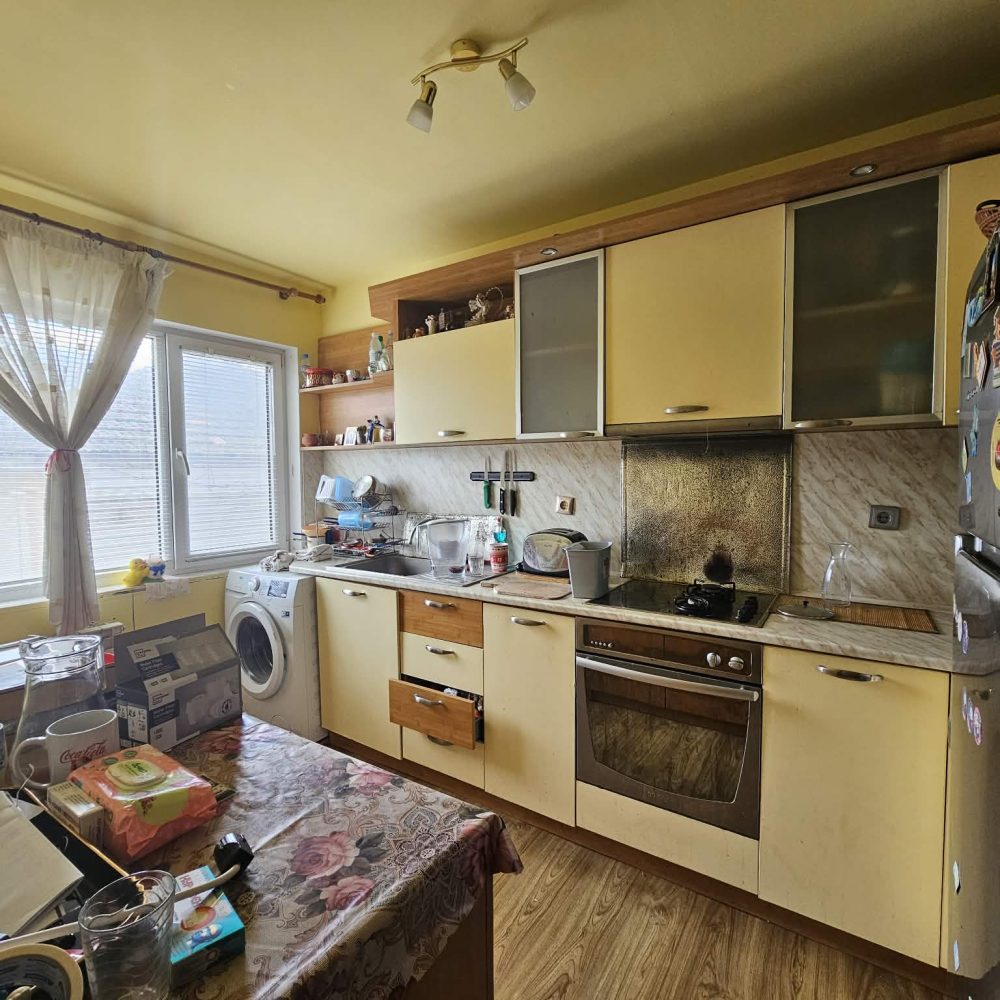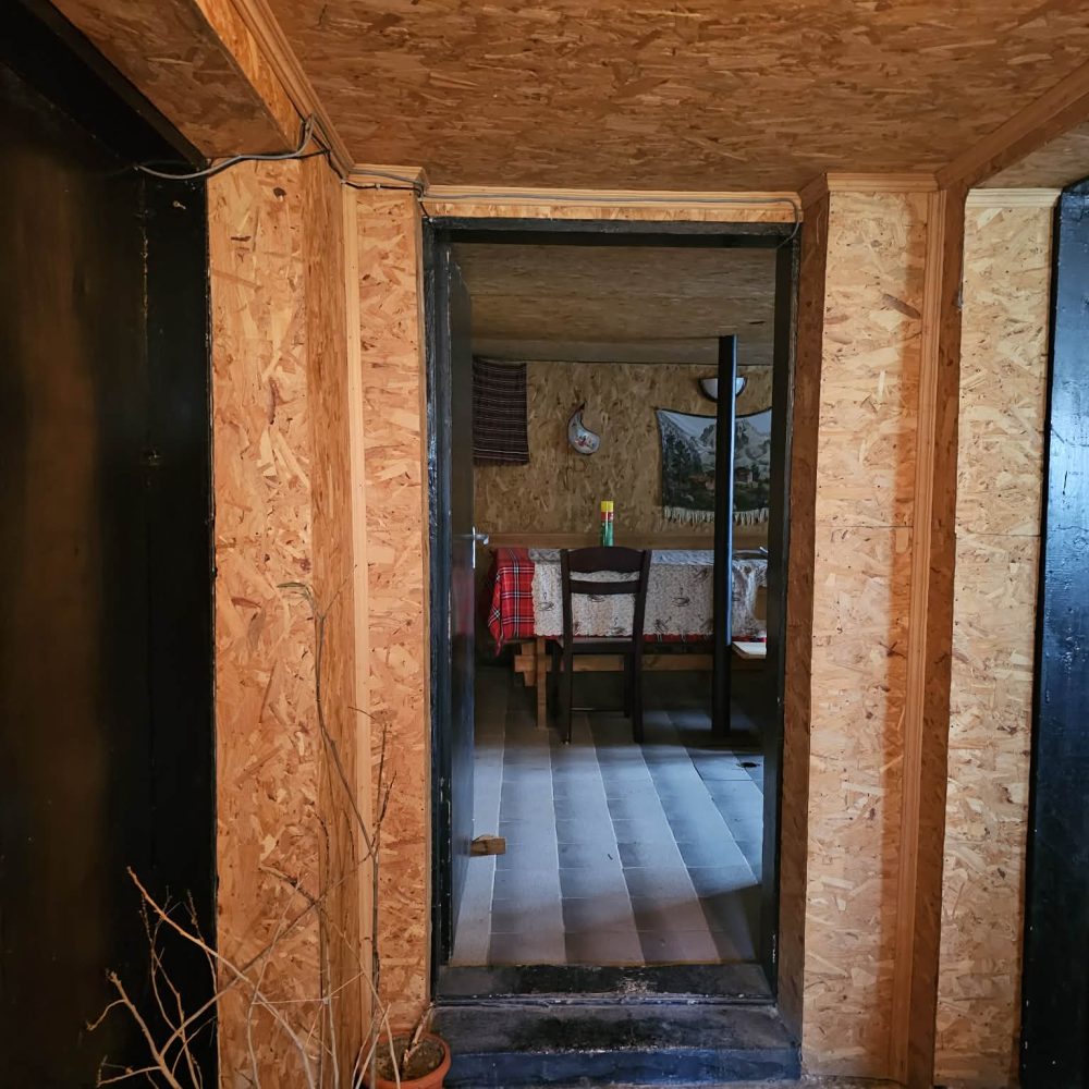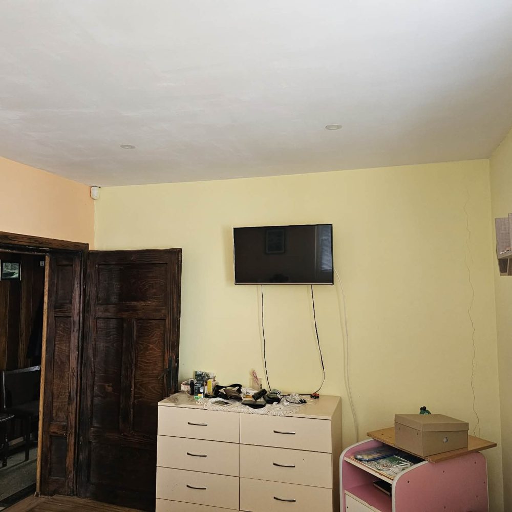 С външно стълбище е осигурен достъп до жилищния етаж, който се състои от входно антре, коридор, всекидневна с кухня, родителска спалня, детска спалня и санитарен възел. Сменена дограма, изградена отоплителна система на дърва с котел и радиатори. Монтирани охранителна система, климатици, интернет, телевизия.